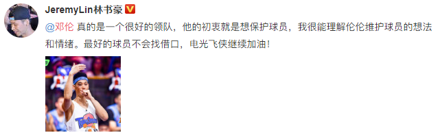 林书豪之所以发博力挺邓伦,就是因为最新一期的节目里,邓伦因为赛场上的事而和裁判有了争执。他也因为维护队员发飙上了热搜,看视频里邓伦确实情绪挺激动,大家也看过篮球比赛,知道如果对判罚或者成绩有争议,要找裁判沟通。可能有部分粉丝不太了解规则,觉得裁判吹黑哨。