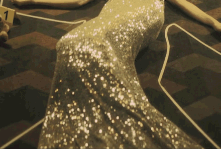 虽然是演尸体,但是baby也要演一个漂亮的尸体。躺在地上的baby妆容精致,一身金灿灿的礼服及其闪亮,侧着头漏出她性感的锁骨,肆意放在一旁的手指也是非常“有戏”,不像是尸体倒像是睡着了。