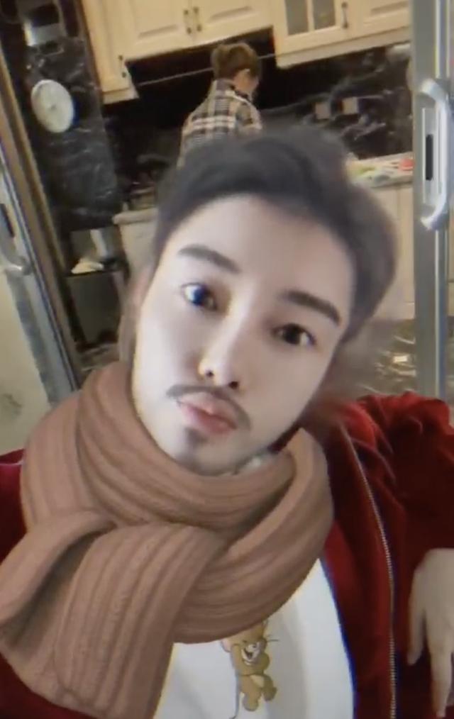 另外一个造型中的李小璐还蓄了胡子,围着围巾,又幻化成了成熟中年男子的形象,散发大叔的魅力。