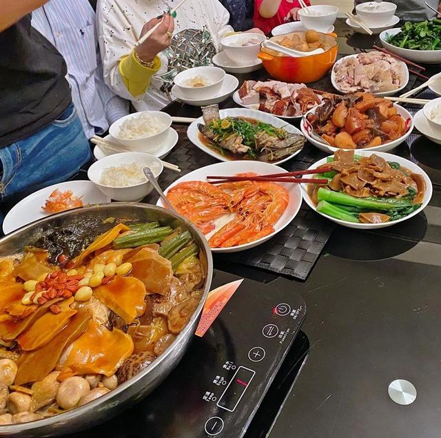 李乘德也晒出了一大桌的好菜,海鲜、猪蹄、蔬菜……应有尽有……不过大家吃完饭还是赶紧各回各家吧,毕竟家里才最好的旅游地!