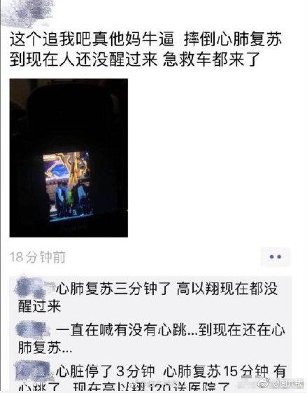 今天早高峰的时间段,小编刷微博时发现高以翔怎么了这个话题。点进去时,大概说的是今天凌晨时分,高以翔在录制蓝台节目《追我吧》过程中,不慎摔倒,然后陷入昏迷。据悉,现场使用了心肺复苏,随后送往医院,生死未明。
