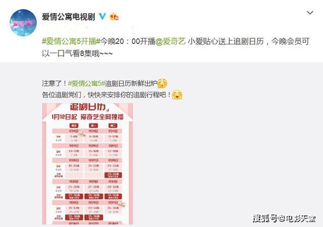 除了《爱情公寓5》本身剧情设计的"借鉴"之外,视频平台的播出方式也让该剧的评分持续下滑。在昨天中午,《爱情公寓5》官微就给观众打好了预防针,本次播出方式效仿了《庆余年》,1月12日开播,每次更新两集,然后在1月28日播出24集之后开始实行付费点播,一次性可以点播25-36集,直通大结局。