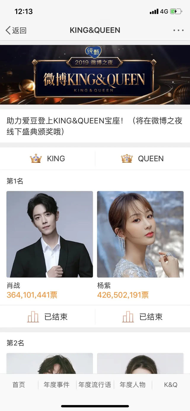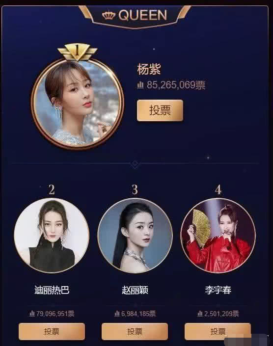 在各家粉丝披星戴月、奔走相告的投票拉票中,微博之夜的各类奖项也尘埃落定。在一众投票中,竞争最激烈的莫过于King和Queen的榜单。当顶流遇上顶流,粉丝们之间也卯足了劲,纷纷助力偶像登顶宝座。在Queen榜的竞争中,杨紫粉丝和迪丽热巴粉丝之间的拉锯战也是为女流量之间的竞争增添了不少看头。