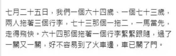 就这样,两个加起来137岁的“老人家”从港出发搭火车去旅游。