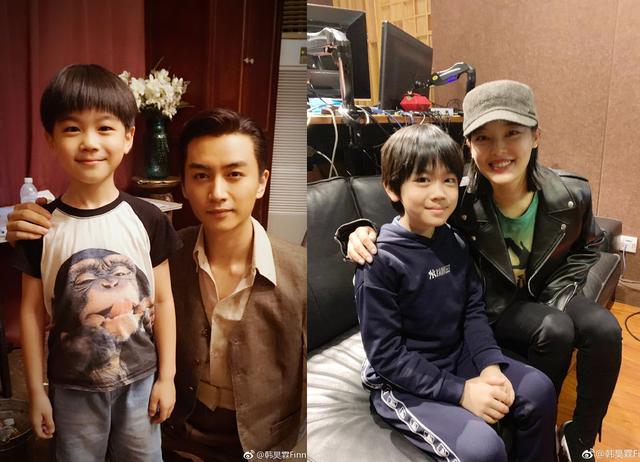正因为从小就拍了不少戏,所以韩昊霖已经跟不少明星有了专属合照,包括陈晓、景甜、辛芷蕾、杨子姗等。