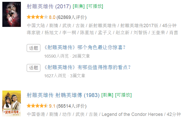 李一桐能演活黄蓉也不单她一个人功劳,反派杨康陈星旭、憨厚郭靖杨旭文都是新版《射雕英雄传》的逆天人设,所以据1983年黄日华,翁美玲最高分9.1之后,2017版《射雕英雄传》的评价数,热议度都比其高,实力已经不言而喻了。