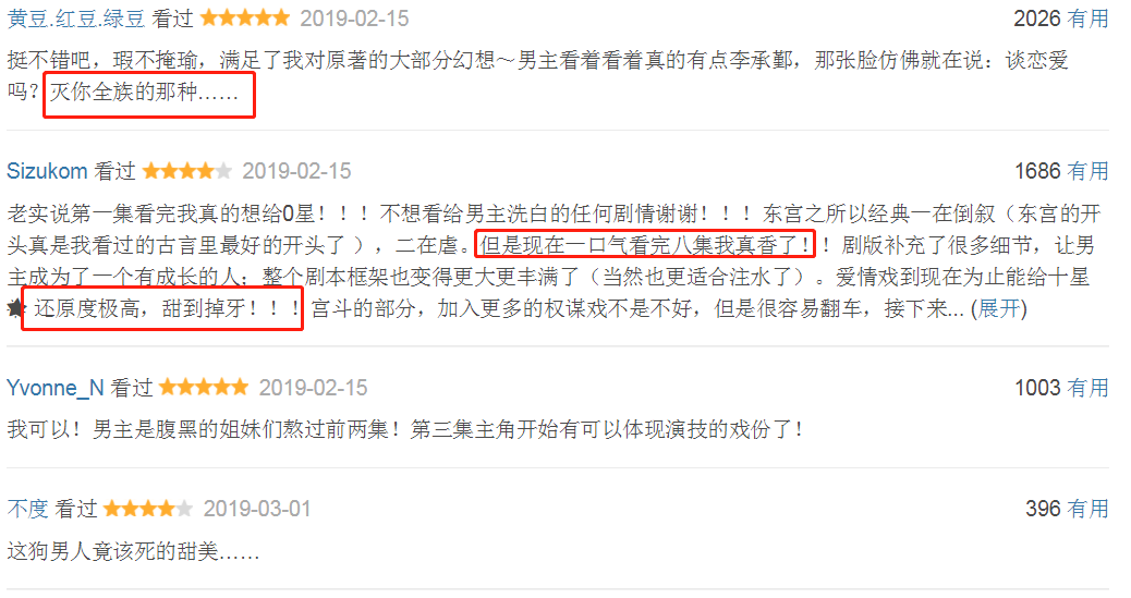 以证据为实,《东宫》确实甜到掉牙,观众不旦夸男主腹黑,更夸男主宠妻如魔。虽然大结局有些伤感,可是女演员的相貌还有陈星旭的颜值,都不免让人流连忘返,看剧有苦既有甜。