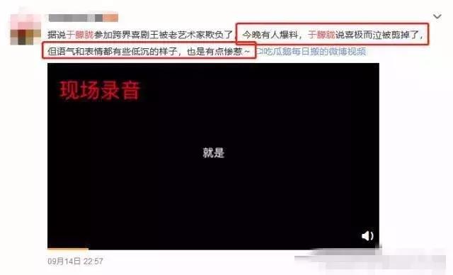 谁知后来事情又再度发转,节目播出时,荧幕上的于朦胧说了一大段话,但唯独“喜极而泣”四个字被剪掉,让人怀疑是节目组欲盖弥彰。