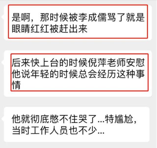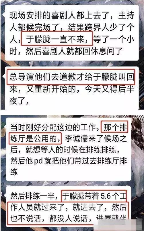 随后也有疑似现场的工作人员出来,为于朦胧平反,事实的真相正是粉丝一早爆料出的那样。该工作人员还爆料,被李诚儒欺负过的艺人不止于朦胧一个,这也让这位老艺术家深陷“人设崩塌”的风波。