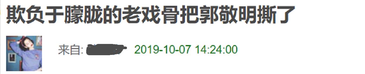原标题:64岁老戏骨膨胀了?骂哭于朦胧后又怼哭郭俊辰,连郭敬明都