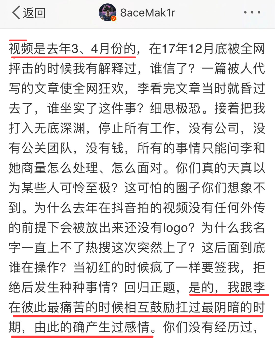按pgone自己的话说,就是他与李小璐在陷入人生低谷的时候,曾抱团取暖,并产生了感情。