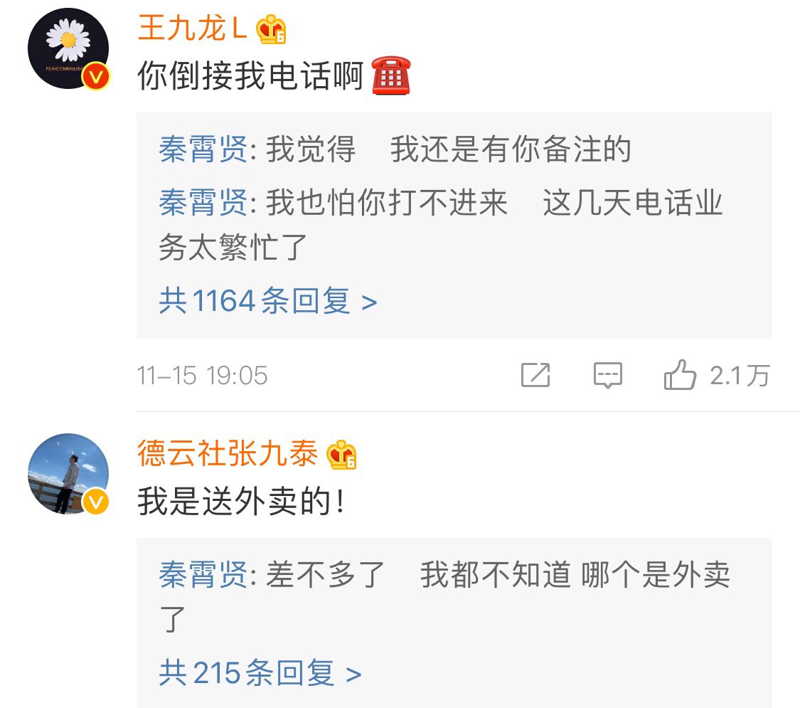 王九龙率先留言调侃秦霄贤。张九泰也没有放弃砸挂的好机会。