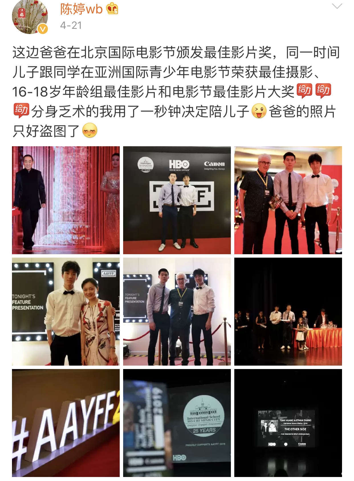 而且这次父子俩还是以“一对父子,两代导演”的主题接受采访的,足以见得大家对张壹男的肯定和他的优秀了。