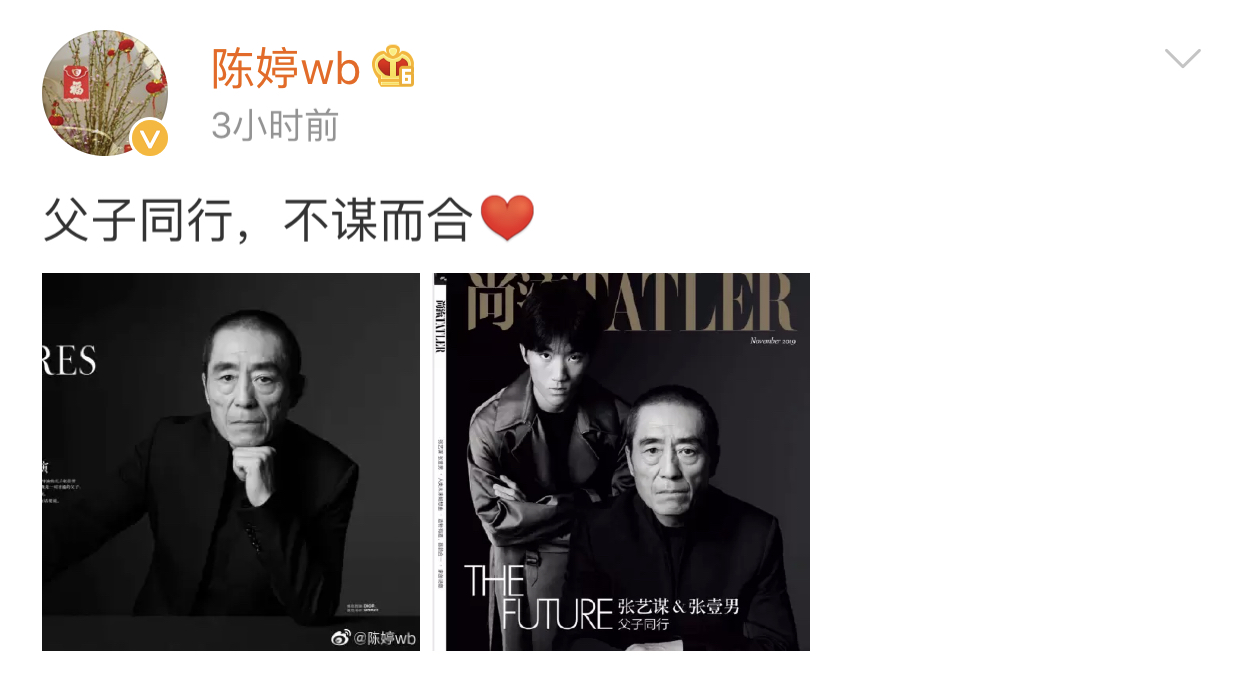 原标题:张艺谋和大儿子合体登封面,陈婷发博言语间满是