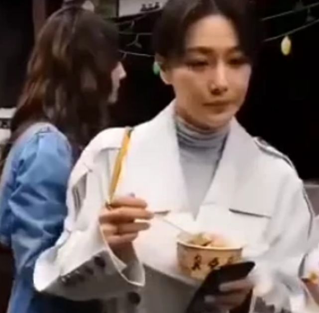 一旁的迪丽热巴与张馨予风格判若两人,穿着蓝色风衣,一头大波浪卷发抢镜十足,可爱甜美,宛如洋娃娃一般。一个英气干练,一个可爱俏皮,同框出镜有种混搭感觉。当天街上人很多,两人穿行在人海中,结伴同行。张馨予一手拿着小吃,像是街边摊那种,十分接地气。
