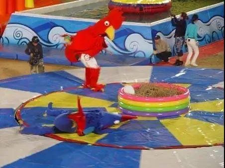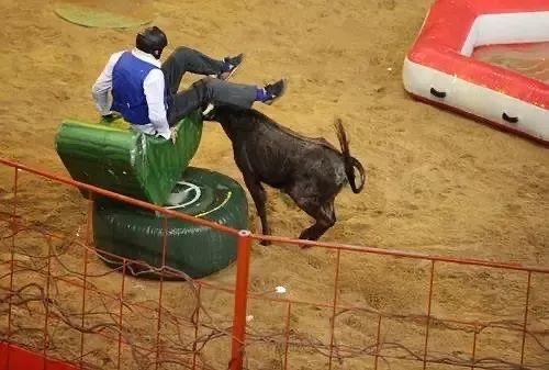 还有“牛来了”这个项目,算是个特色项目。这个“牛来了”是有点危险的,但节目组防范措施很到位。用的都是小牛,而且一旦有选手困住了,马上就有工作人员进场地把牛引开然后马上爬栏杆逃走。
