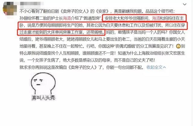 而且在“跑道型房”中,孙俪的介绍也引发了网友极大不满,老大和爷爷住隔断间,海清和妈妈住主卧的子母床,因为方便一起照顾即将生产的宝宝,而老公白天要休息怕被打扰,所以被安排住在穿过长走廊才能到的大床单间房兼工作室,还带阁楼。