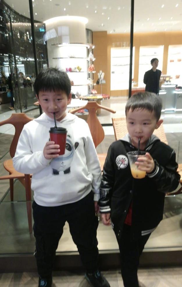 轩轩和小伙伴一起喝着饮品,表情羞涩呆萌。