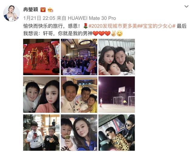1月21日深夜,冉莹颖在社交平台上分享了一家人的九宫格,并说道:愉快而快乐地旅行,感恩!2020发现从城市更多没,宝宝的少女心!最后我想说:轩哥,你就是我的男神!