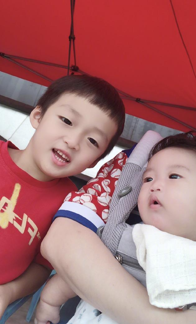 兄弟俩拥有同款单眼皮小眼睛,鼻子和嘴巴都神相似!弟弟现在确实很胖,长大之后或许会抽条,这样就能看到瘦版轩轩的模样了,一定很帅气!