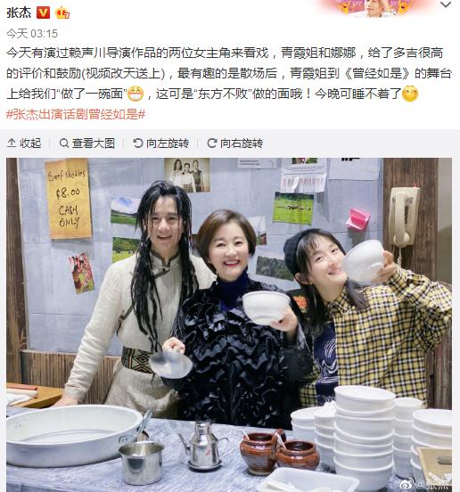 不仅如此,谢娜这次还神助攻,为张杰请来了女神林青霞围观助阵。更重要的是,演出结束后,林青霞还去后台看望张杰,亲切拥抱合影,甚至还为张杰煮面,那这真的是靠谢娜卖面子了。因为林青霞如果只是捧场导演赖声川的作品,不见得会单独去看望张杰还给他煮面,而谢娜为什么这么有面子,是因为之前和林青霞一起参加了湖南卫视真人秀节目《偶像来了》,以谢娜幽默搞怪的性格加上很会经营积累人脉的能力,和林青霞成为好朋友不难。所以张杰演出话剧,加上导演是赖声川,谢娜才能请来林青霞千里迢迢捧场,还和张杰单独见面。