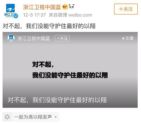 就在林涌的这篇采访曝出后不久,浙江卫视官微发布了一篇名为《对不起,我们没有守护住最好的以翔》的文章,其中所表述的内容基本上和林涌的采访内容一致。