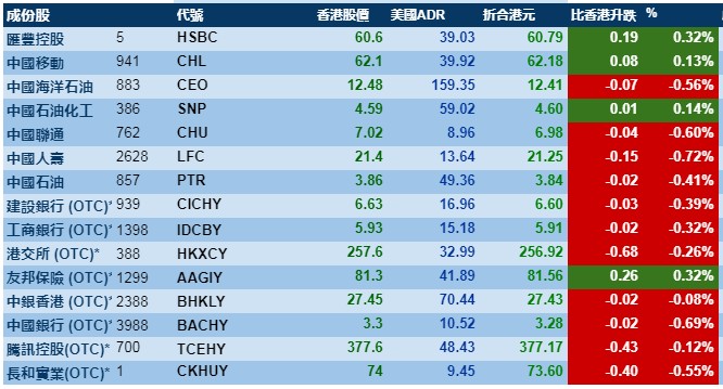 智通财经APP获悉,12月19日,美股三大指数小幅震荡,港股ADR指数全日微跌,按比例计算,收报27863点,跌21.36点或0.08%。大型蓝筹涨跌不一,汇丰控股收报60.79元,较港收市升0.19元;腾讯控股收报377.17元,较港收市跌0.43元。