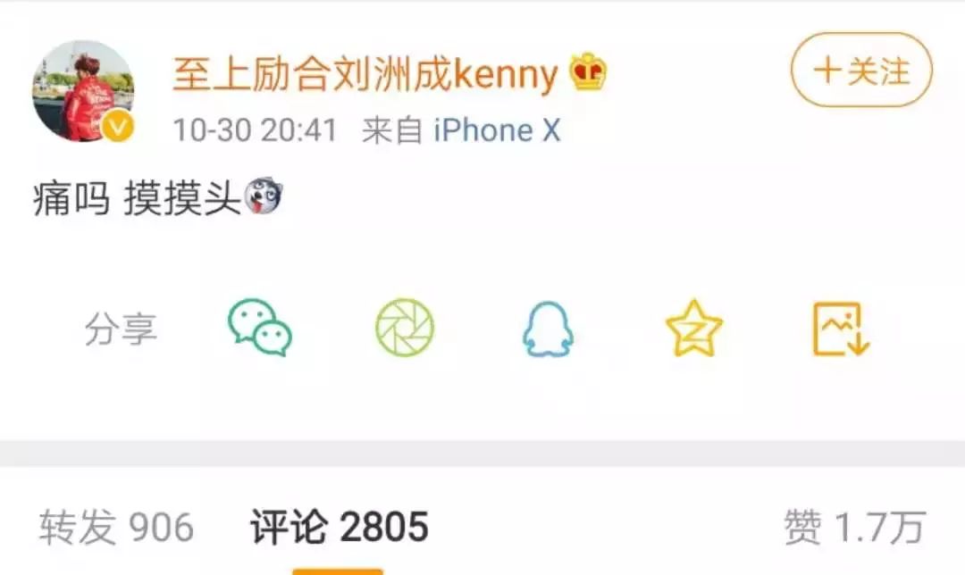 18年初马苏被卷进“出轨门”,刘洲成又把这句话原封不动地还给了马苏,并嘚瑟地发微博说:“没毛病吧?风水轮流转!”