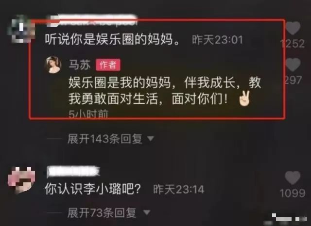 因为这件事,马苏还获得了“娱乐圈妈妈”的称号。马苏看到评论后大气回应:“娱乐圈是我的妈妈,伴我成长,教我勇敢面对生活,面对你们!”