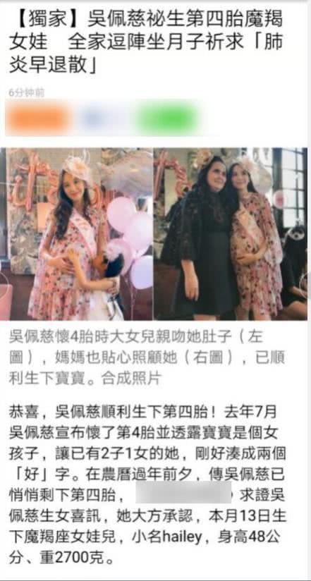 原标题:吴佩慈秘密产女,6年生4胎豪门贵妇难当,都快赶上陈浩民蒋丽莎