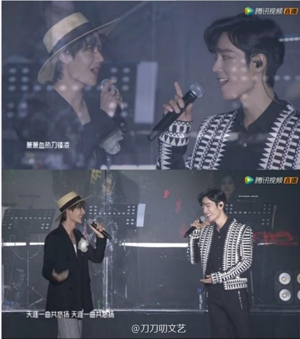 两个人合唱的《陈情令》主题曲风靡今夏,他们在演唱会上也再度合唱起了《无羁》,默契十足。