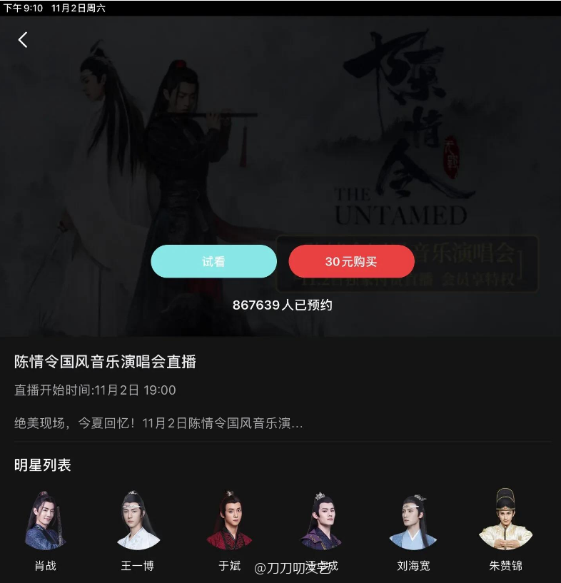 没想到网络直播也这么火爆,早在预约阶段就有超过100万人预约成功,即便是视频网站会员也需要额外付费30元,非会员则需付费50元。