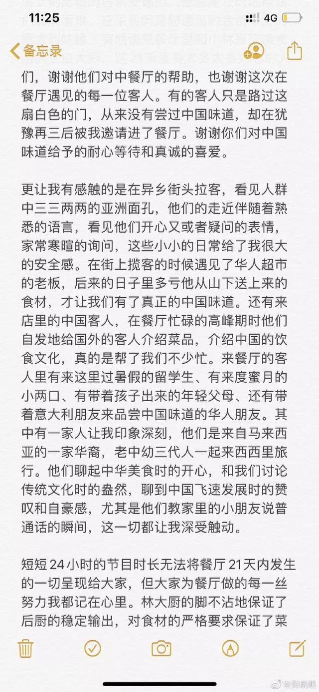 昨晚11点多,黄晓明发了一篇小作文一样的“体验感受”,从开播到收官,点点滴滴他都写出了自己的所见所闻所感,心思细腻内容偏长。