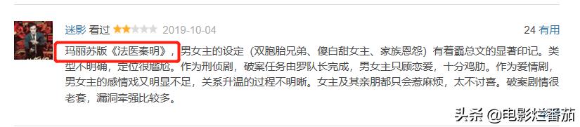 但是有些编剧没有学到点子上,缺乏法医经历的他们在编写故事时,推理性不够,只能拿爱情来凑——这部电视剧也是一部披着法医外衣的爱情片。