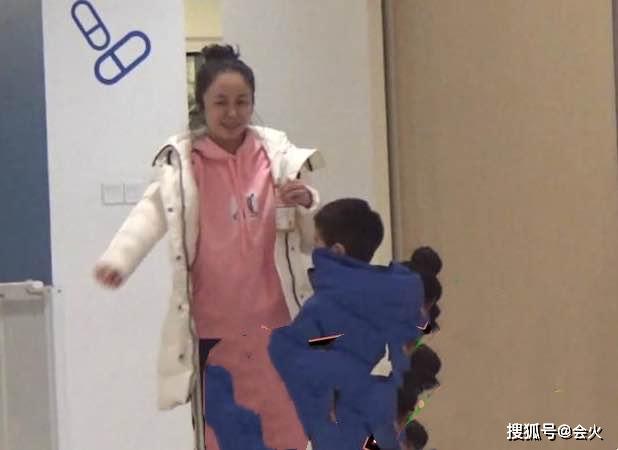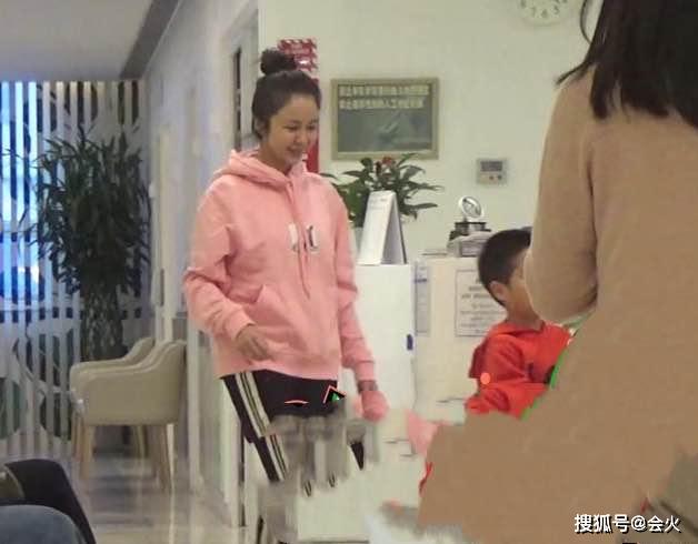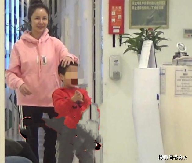 杨若兮穿着一身粉红色卫衣,打扮十分年轻。脸上未施粉黛,依稀可以看见满面油光,也是十分真实了。杨若兮6岁的儿子走在前面,她还将手搭在儿子头上,母子俩看上去关系十分亲密。