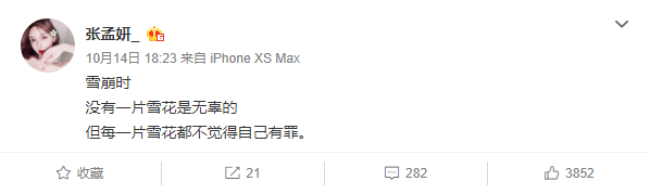到了10月14日崔雪莉自杀那一天,张孟妍就发表了雪花论,