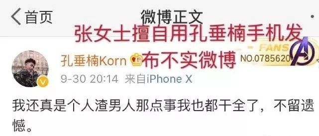 同时洗白孔垂楠“自锤”渣男的微博,称是张孟妍拿孔垂楠手机发的。