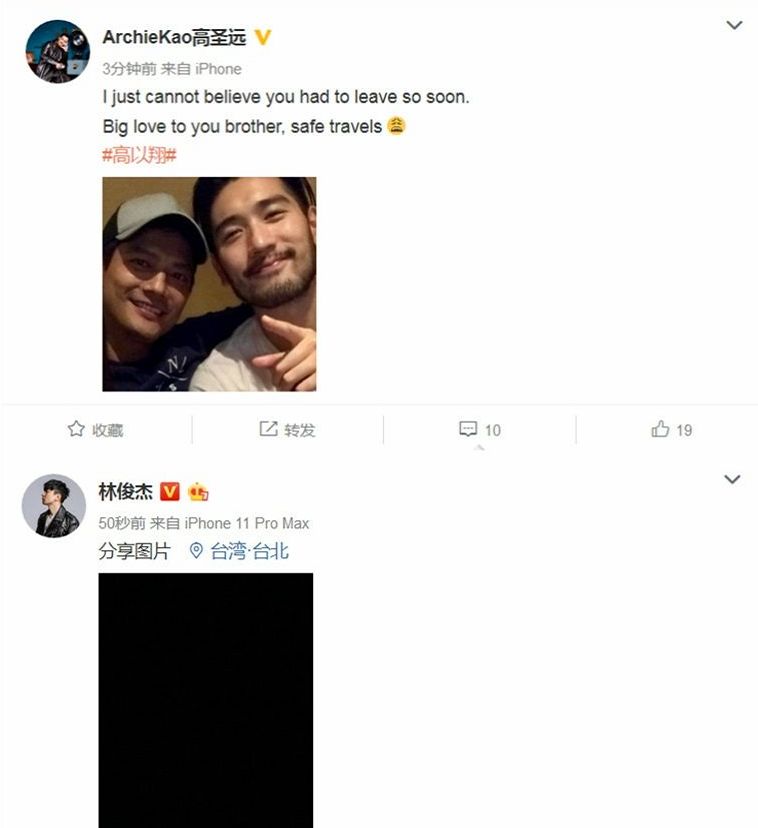 而林俊杰和王心凌则以黑色图片来表达自己的心情,可想而知他们内心有多么沉重。