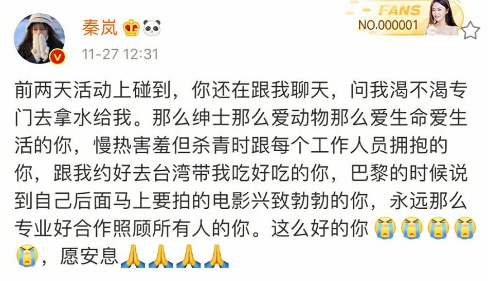 秦岚写了一篇小作文,说出了她遇到了高以翔、她眼中的高以翔,还是那个温文尔雅的阳光大男孩,可惜这么好的他却再也见不到了。