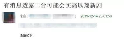 因此,有高以翔粉丝留言请求不要把新剧版权卖给浙江卫视。该CEO回复说:“不会的”,正式表明剧方态度。