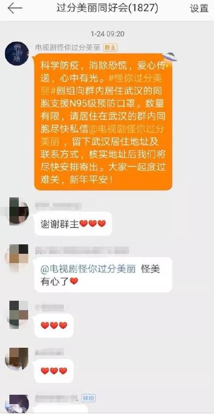 现在,《怪你过分美丽》剧组又以寄送口罩和防护用品的形式,传递着爱与感动,值得我们为之点赞。