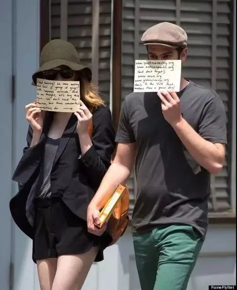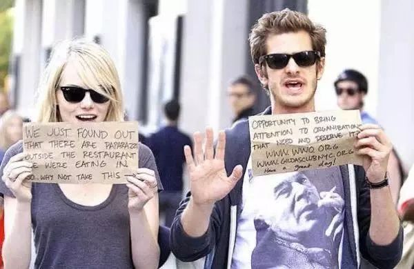 因为这对小情侣人气太高,狗仔死追不放,于是俩人就举起了小牌牌:
