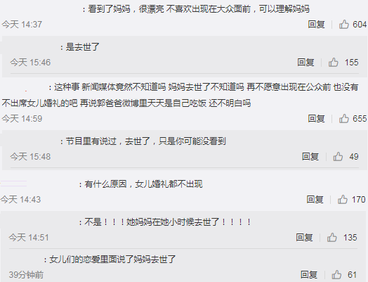 网上的质疑声层出不穷,而后便有郭碧婷的粉丝表示其实郭碧婷的妈妈在她很小的时候就去世了。由于郭妈妈从来没有公开现身过,甚至连她现在的照片都没有出现过一张,不少网友都已经认同了这个说法,认为郭妈妈“已经去世了”。