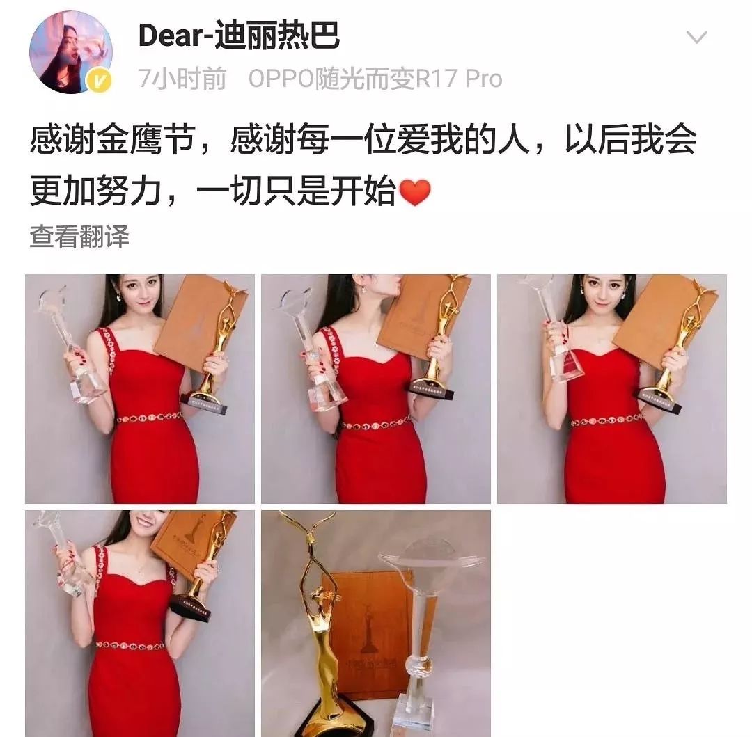 一直以来有花粉因为水晶杯和金杯争论不休到底哪个杯才是正经视后,到了迪丽热巴这里毫无争议,因为不管哪个她都拿了个大满贯。