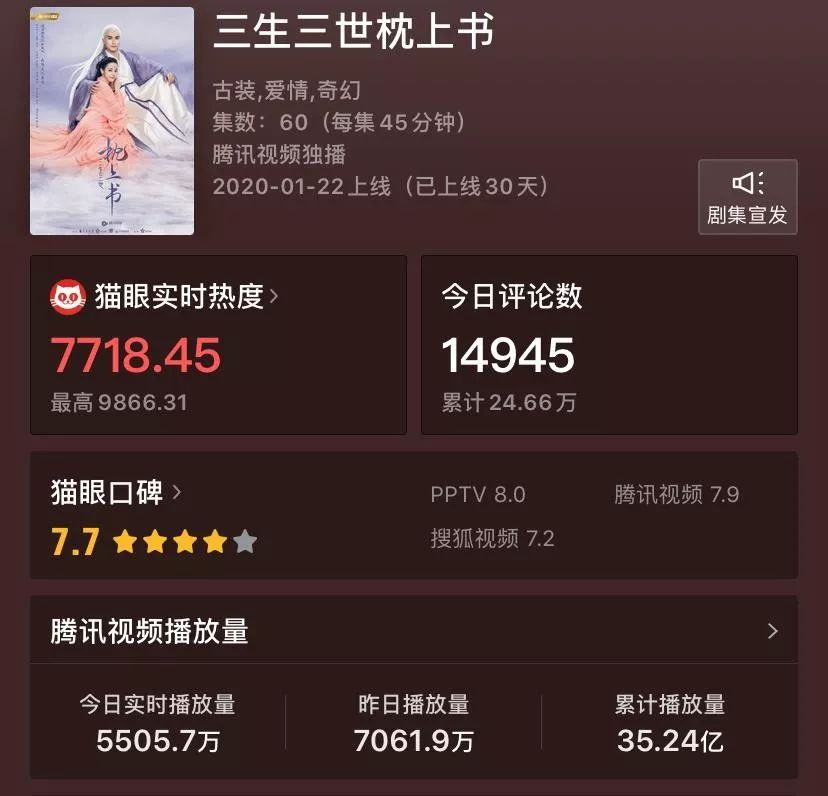 特殊时期,所有娱乐相关都退位全民关注的卫生事件,在败坏了两三天的路人缘之后,枕上书才真正算上是“低调”开播起来,截止到今天,枕上书的累计播放量已经超过30亿,成绩相当亮眼。