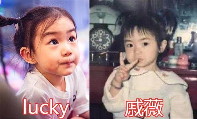 戚薇和她的女儿lucky也是如此。看图中左边是lucky如今的样子,扎着两个小揪揪十分漂亮。再看右边是戚薇小时候的样子,这对母女的相似度可以说见证了基因强大呀。