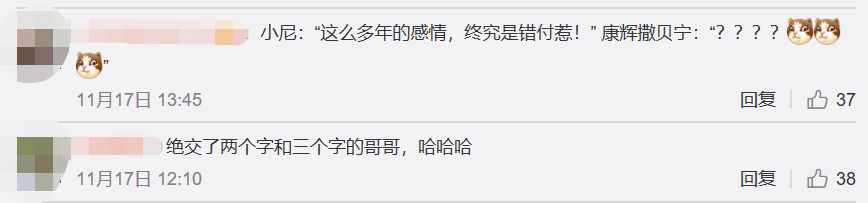 还有11月17日,撒贝宁和康辉在聊天时提及四字兄弟时,撒贝宁回答说“四个字的尼姓兄弟,台里有吗”,这一番话也是伤了尼格买提的心,随后尼格买提在社交平台上回应“从此心中再无三字和二字哥哥”。