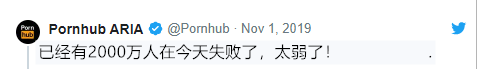 有些意志不坚定的朋友早已在这样的轮番轰炸前失守,就在11月的第一天,Pornhub的官推已经发来了嘲讽: