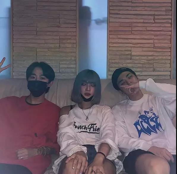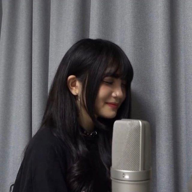 在未出道前,她还和韩国网红博主“尖叫鸡小哥Big Marvel”一起cover过《We don't talk any more》,从图片里可以看出,除了蓝发之外,一头黑色长发也颜照也是可,那一抹笑容也是饱含了少女的娇羞。