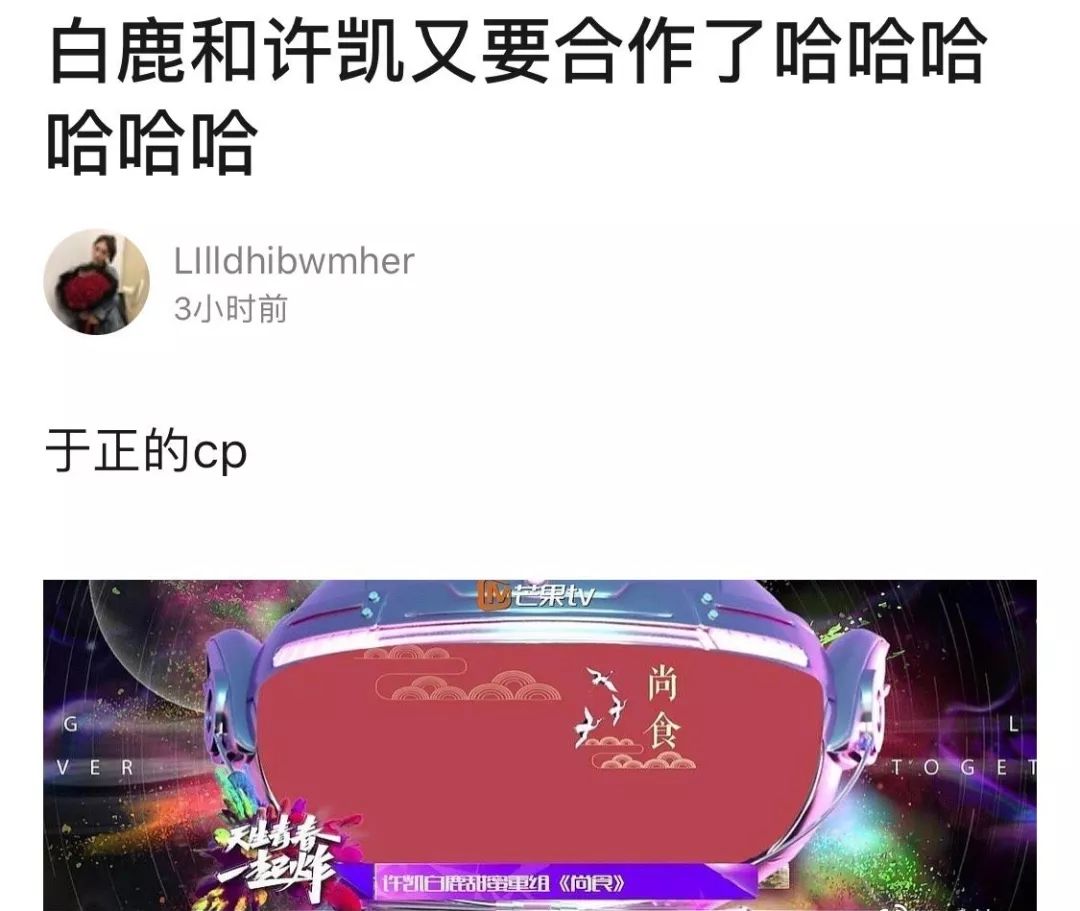 而正正呢,喜欢强硬按头cp。早年的晴川有八阿哥杨幂冯绍峰,再有今日爆料暗指的陈晓赵丽颖,后有吴谨言许凯,现在还有白鹿许凯。相信现在很多白鹿和许凯的唯粉们都怕了,这老娘们儿,太能胡来了吧!